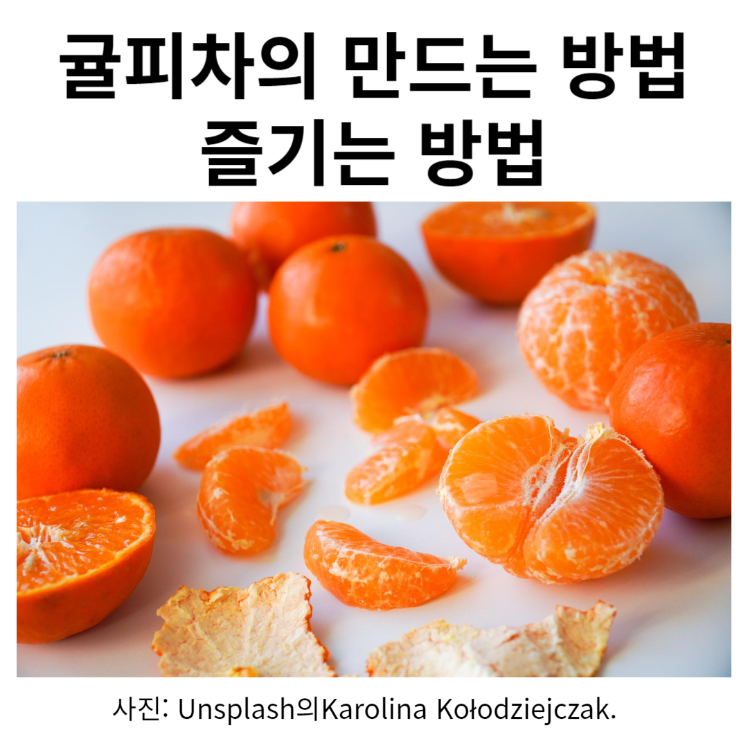 귤피차는 만드는 방법이 간단하고 재료도 쉽게 구할 수 있어 한국뿐만 아니라 전 세계적으로 인기 있는 차입니다. 귤피차는 귤의 껍질을 말려서 만들기 때문에 귤을 먹을 때 껍질을 버리지 말고 잘 말려서 차로 만들어 마시면 좋습니다. 먼저 껍질을 깨끗이 씻어 얇게 벗겨내어 식초나 소금물을 넣은 물에 10분 정도 담가 씻은 후 햇볕에 말리거나 오븐에 100도의 온도로 30분 정도 말립니다. 잘게 썰어서 기름 없는 팬에 살짝 볶아줍니다. 그다음으로 센 불에서 진피를 넣은 물이 끓어 오늘 때까지 끓인 후 끓어오르면 불을 줄이고 20~30분 정도 약한 불에 끓입니다. 귤피차는 단맛이 약한 편이기 때문에 먹기 전에 꿀이나 설탕을 조금 첨가하거나 단맛을 더하면 더욱 맛있게 즐길 수 있습니다. 다른 재료를 넣어 맛과 효능을 더할 수 있습니다. 레몬이나 오렌지 등의 과일즙을 넣으면 상큼한 맛을 더할 수 있습니다. 레몬은 비타민 C가 풍부하게 함유되어 있어 감기 예방에 도움이 되고, 오렌지는 비타민 C와 식이섬유가 풍부하게 함유되어 있어 소화촉진과 변비 예방에 도움이 됩니다. 생강을 넣어서 먹으면 따뜻한 성질을 더하고, 감초를 넣으면 목을 보호하는데 도움이 됩니다. 차가운 물에 우려내어 마시면 상큼한 맛을 즐길 수 있습니다. 특히 여름철에 시원하게 마시기 좋습니다. 차로 마시는 것 이외에도 다양한 방법으로 활용할 수 있습니다. 냉장고에 넣어 두었다가 마시면 상큼한 과일 음료로 즐길 수 있으며 팩으로 만들어 피부에 발리면 피부 미백과 탄력 개선에 도움이 됩니다. 또 꿀이나 설탕을 넣고 끓여 잼이나 시럽을 만들어 즐길 수도 있습니다.