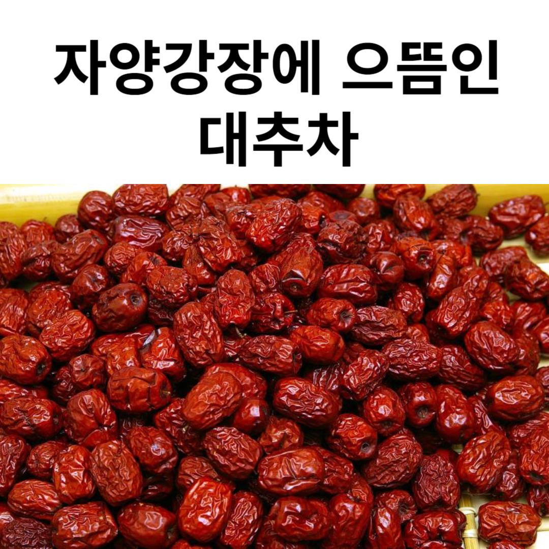 대추는 예로부터 한방에서 자양강장, 보간, 강장, 생진안면등의 효능을 지닌 으뜸가는 보약으로 여겨져 왔습니다. 풍요와 다산을 의미하는 등 여러모로 귀하게 사용해 온 과일입니다. 예로부터 겨울이면 가을에 추수한 대추로 차를 끓여 마시며 감기를 이겨내곤 했습니다. 대추의 원산지는 인도 북부와 중국 남부 등 남아시아 지역이지만, 우리나라에서도 삼국시대에도 재배했을 정도로 역사가 오래된 과일 중 하나입니다. '대추 세알이면 죽어가는 사람도 살린다.' '대추를 보고 안 먹으면 늙는다.'는 속담이 있을 정도로 대추의 효능은 옛 조상들부터 전해 내려오고 있습니다. 대추차는 대추를 물에 넣고 끓여 만든 차로, 대추의 영양소를 간편하게 섭취할 수 있는 방법입니다. 대추에는 비타민, 비타민A, 비타민 B1, 비타민B2, 비타민E, 칼륨, 마그네슘, 철분 등의 다양한 영양소가 풍부하게 함유되어 있습니다. 이러한 영양소들은 신체의 에너지 대사를 활성화하고, 피로를 회복시키는데 도움을 줍니다. 또한 대추의 당분은 천천히 흡수되어 장시간 에너지를 공급해 줍니다. 펙틴, 탄닌, 아미노산등의 성분이 풍부하게 함유되어 있습니다. 이러한 성분들은 위장 점막을 보호하고, 위액 분비를 촉진하여 소화불량, 위염, 위궤양등의 소화기 질환을 예방하고 치료하는데 도움을 줍니다. 사포닌, 아미노산, 비타민B 1등의 성분이 풍부하게 함유되어 있어 면역력을 높이고, 신체의 전반적인 기능을 강화하는데 도움을 줍니다. 또 비타민A, 비타민C, 비타민E등의 성분이 풍부하게 함유되어 있습니다. 이 성분들은 피부 세포의 재생을 촉진하고, 피부 노화를 방지하는데 도움을 줍니다. 뿐만 아니라 대추의 당분은 피로를 회복시키고, 기력을 증진 시켜 맑고 생기 있는 얼굴빛을 유지하는데 도움을 줍니다. 숙면을 돕는 효능도 있으면 스트레스 해소와 정서 안정을 도와줍니다. 혈압을 안정시켜 주며 혈류의 개선에 효능이 있습니다.